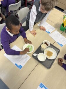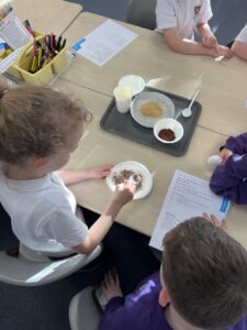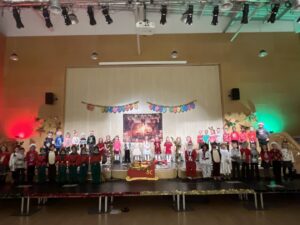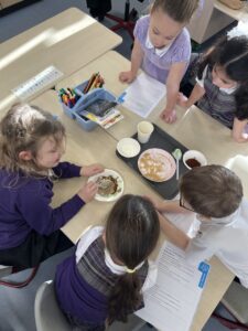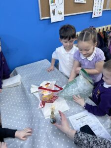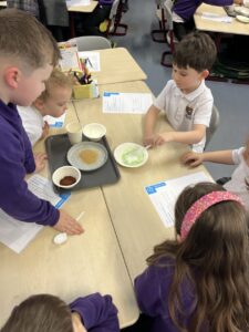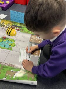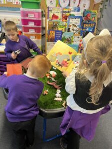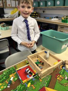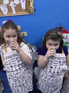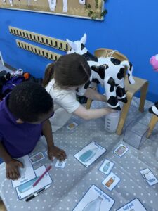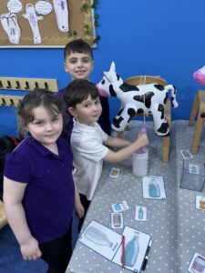 Through our On the farm, we learned about different animals and how they live and grow. We explored how farmers take care of animals and crops, and why farms are important for giving us food like milk, eggs, fruits, and vegetables. We talked about farm vehicles and jobs that farmers do every day. This topic helped us understand nature, where our food comes from, and how to care for living things.