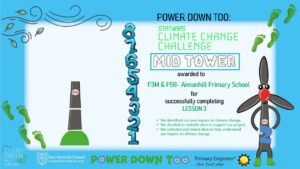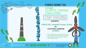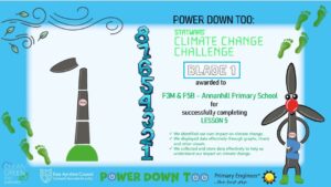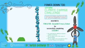 Last year we achieved Power Down! This year we are going for Power Down too! P3M and Miss McDowall along with P5B and Mrs Barrie have taken this on.