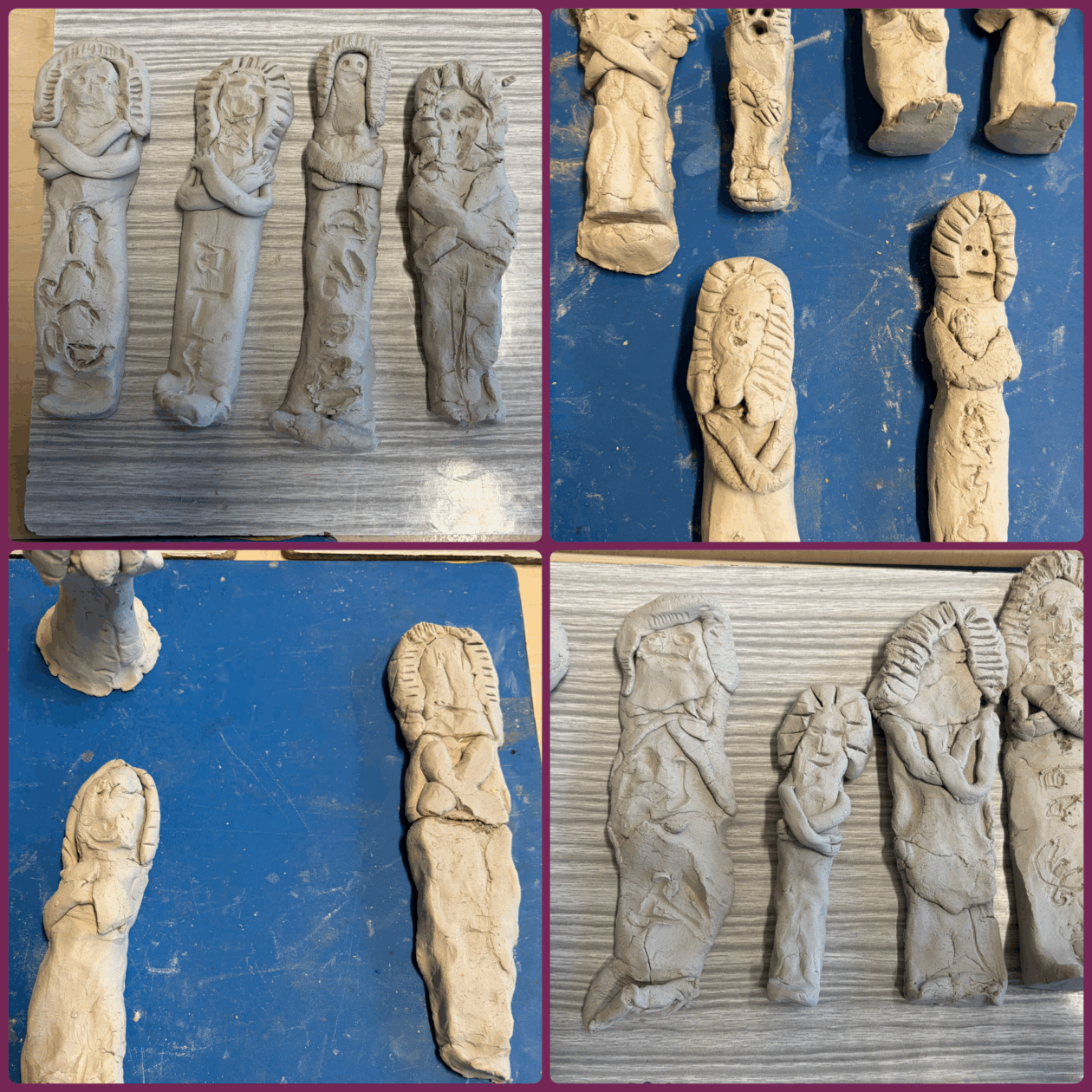 As we were learning about the pharaohs and their beliefs, we learned that they place these Shabti models in their tomb so they can serve them in the afterlife.