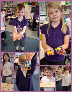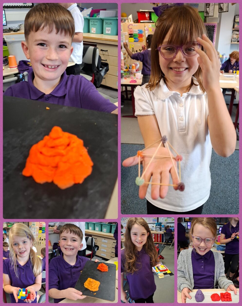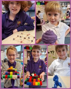 We have been learning about the different types of Pyramids in class and used different materials to see if we could create any of them with jellytots and cocktail sticks, lego, K’nex, sugar cubes, linking cubes, plasticine and play-doh. Here are some of our creations! We made Step Pyramids, Red Pyramids, Bent Pyramids & Khafres Pyramids ( with sphinx).