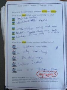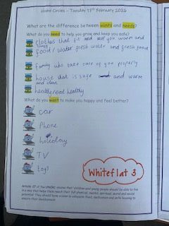 In our Home Circles we looked at Article 27 of the UNCRC, which states that ‘children and young people should be able to live in a way that helps them reach their full physical, mental, spiritual, moral and social potential. They should have access to adequate food, medication and safe housing to ensure their development’.