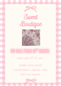 Order NOW with the Sweet Boutique girls in P7. Cash only.