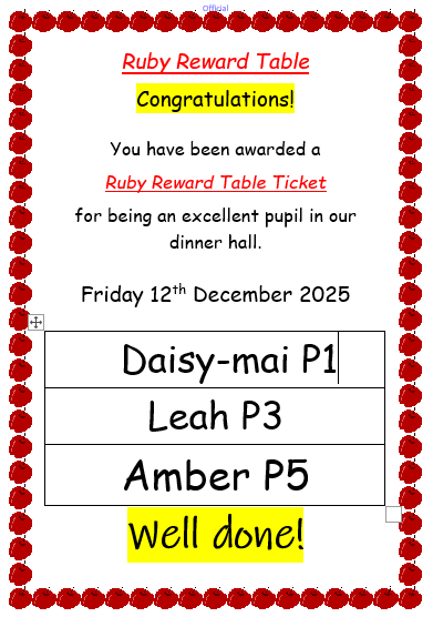 All pupil names are entered into the draw and two names are drawn to win £25.00 of Smyths Toy Vouchers.