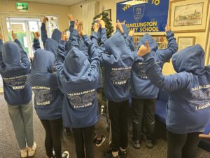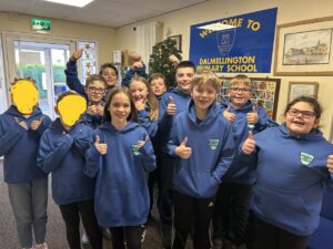 Primary 7 received an early Christmas present! They got their Primary 7 leavers hoodies. They were delighted to receive them and couldn’t wait to try them on.