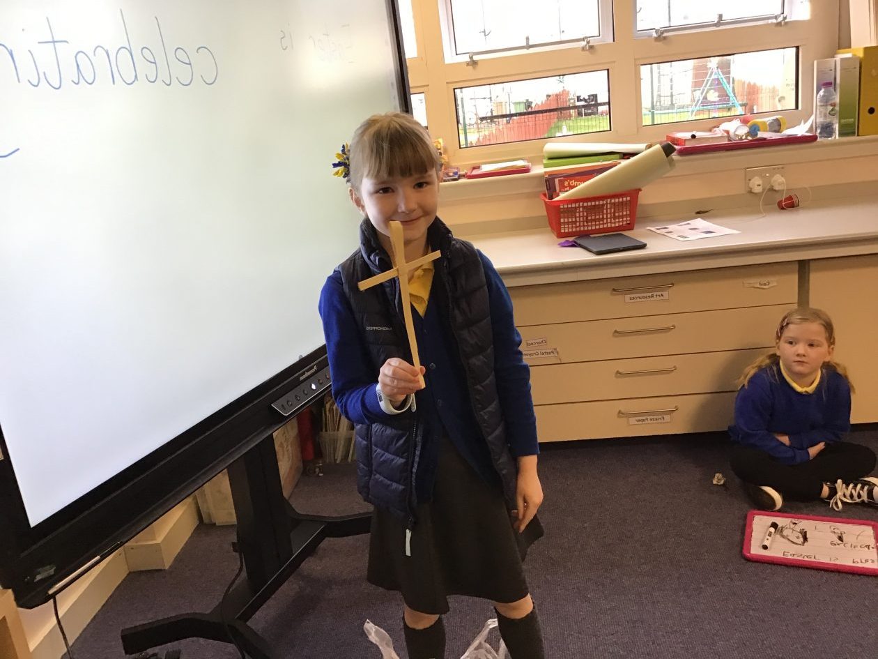 Sharing palm crosses for Easter