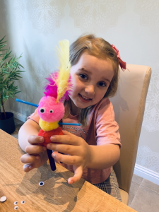 Mollie loved the jumblebum story. She made her own monster from some collage materials she found. Does he have a name Mollie?
