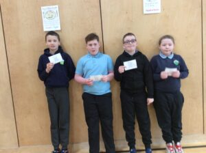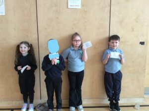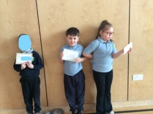 Thank you to the children who shared their successes with us this morning – always great to hear! Aaron had football success and also took part in a Strings events, as did Emily. Mirren was very brave when at the hospital and got a star patient award and Alife made a watch with hid Dad – wow!