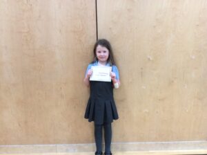 We have Kaelan who managed to be awarded with player of the match. Darcey who received several dancing trophies (with assistance from her little sister Jorgie!). Harris who received a medal for taking part in a go-karting event. Sophia who earned her black stripe belt. And Emily who took part in a 5k event and was the fastest child to complete it! Well done everyone, fabulous news!