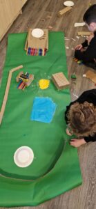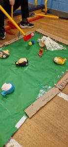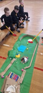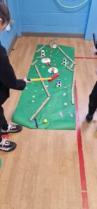 We investigated the history of golf. We found out about a local golf course and made our own mini golf courses.