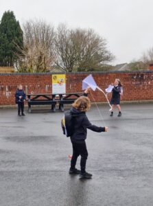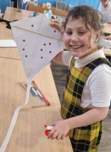 We worked in our House teams to create our kites. The pupils enjoyed flying them in the playground.