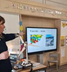 Thank you so much to Carol from Vattenfall for paying us a visit to talk about different types of energy today. We learned so much more about the power of wind and Primary 3 really enjoyed learning about different job possibilities at a wind farm.