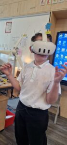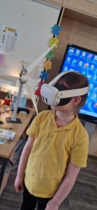 Some pupils were lucky enough to be chosen randomly to use the Vattenfall Virtual Reality headset to see the inside and the top of a real wind turbine!
