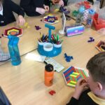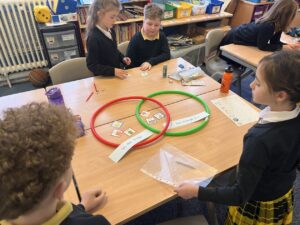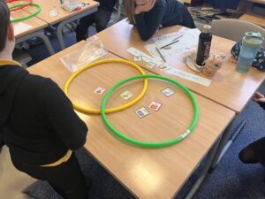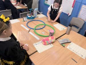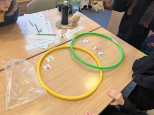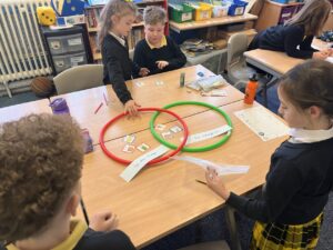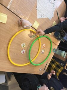 We have been using Venn Diagram to sort 3D shapes by their properties. The class were then challenged to create their own criteria to sort the shapes by.