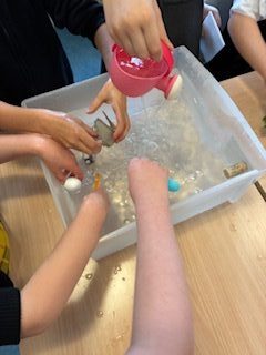 We explored buoyancy and items that would float or sink. We discussed what the items were made of and why they were more likely to float or sink.