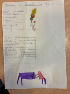 P4/5 wrote a recipe for the Christmas Eve they have at home as part of the genre procedural writing.