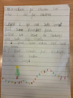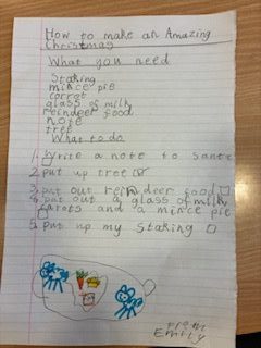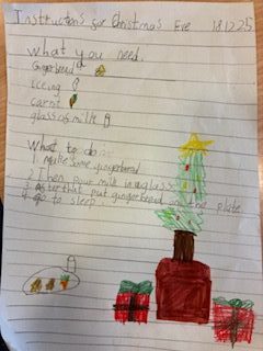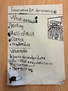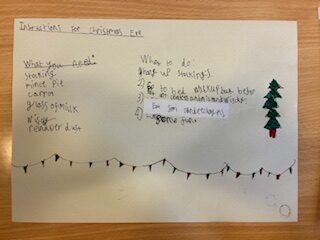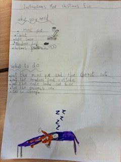 P4/5 wrote a recipe for the Christmas Eve they have at home as part of the genre procedural writing.