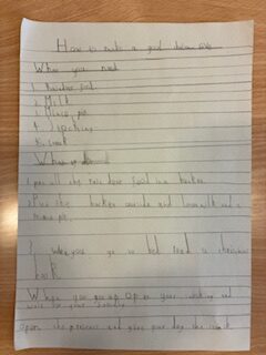 In literacy we have been learning to create pieces of procedural writing and this week we focused on a recipe for a jam sandwich.