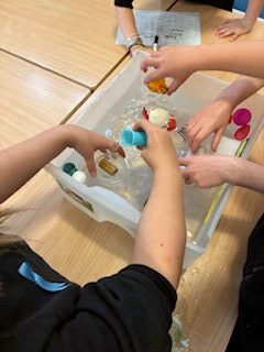 We explored buoyancy and items that would float or sink. We discussed what the items were made of and why they were more likely to float or sink.