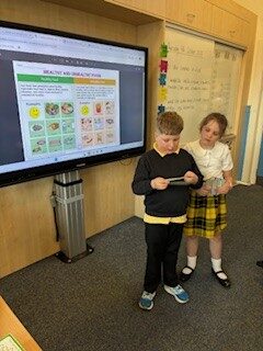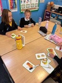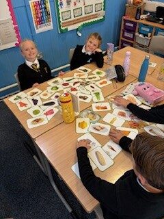 Today we were exploring foods that are healthy and unhealthy. We identified which ones we should have more or less of and chose foods that could be a healthy lunch choice. We discussed the impact of choosing too many unhealthy foods and why they are unhealthy.