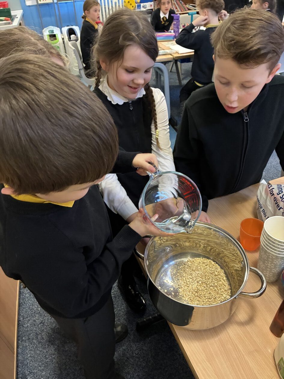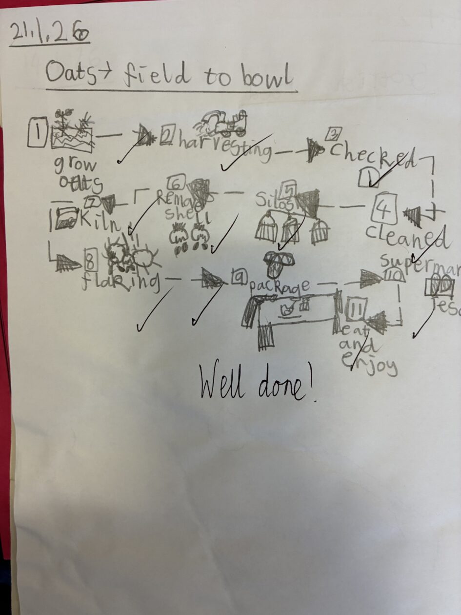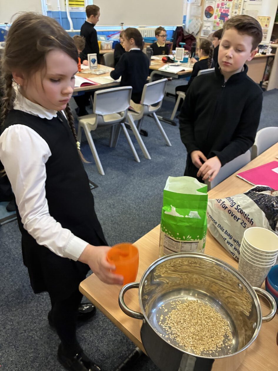 As part of our Social Studies topic, Scotland, we explored the production of oats from field to bowl then we made some delicious Scottish porridge 🏴