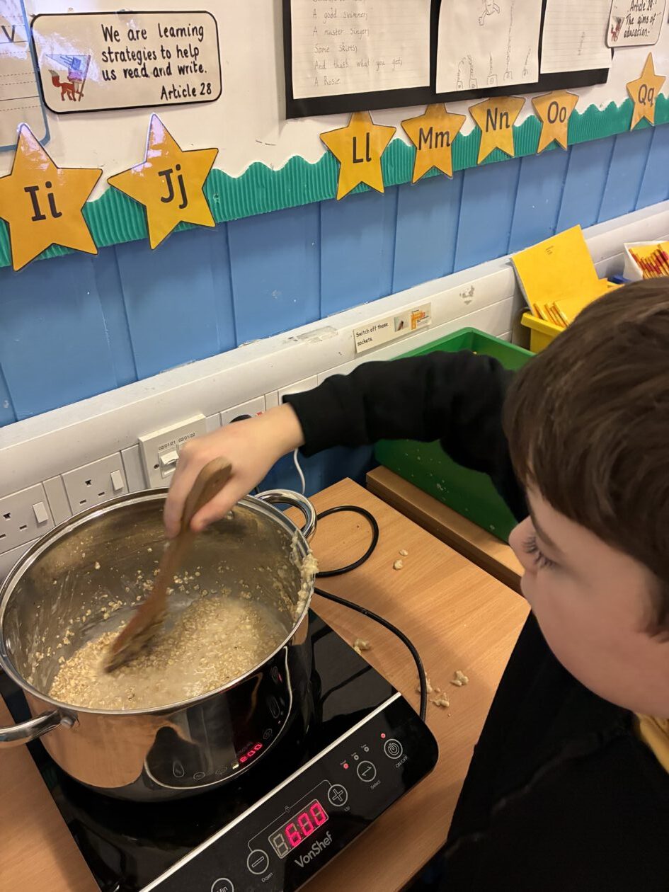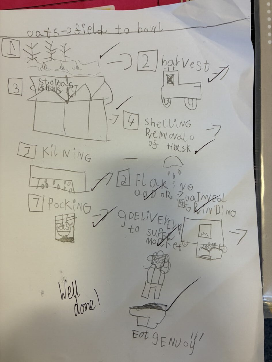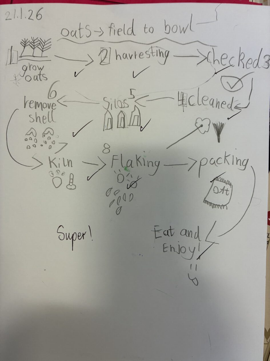 As part of our Social Studies topic, Scotland, we explored the production of oats from field to bowl then we made some delicious Scottish porridge 🏴