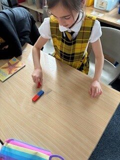 We explored magnets, magnetism, the poles of a magnet and how they are used every day and the force of attraction or how they can repel.