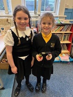 We collected lots of leaves to make the hedgehog boxes cosy and topped up the bird feeders. we then had a special treat when p7 came to teach us how to make a wreath from the willow in the garden.