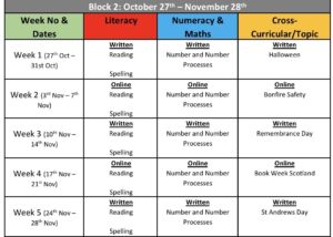 Homework Block 2 will run from Friday, 27th October to Friday 28th, November.