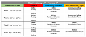 Homework Block 3 will run from Monday 12th January to Friday 6th February.
