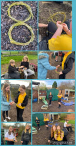 We have used the cut willow in our garden to try our hands at willow weaving. We have been practising this skill over the last two afternoons and are very proud of the willow wreaths that we have created to sell at the Christmas Fayre. Here is a sneak preview of what we will be selling after we add some Christmas touches.