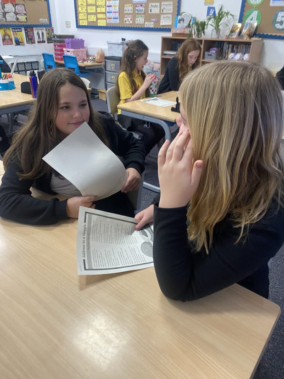 We have been exploring Scots language and translating the poem ‘Address tae a Haggis’  into modern English.
