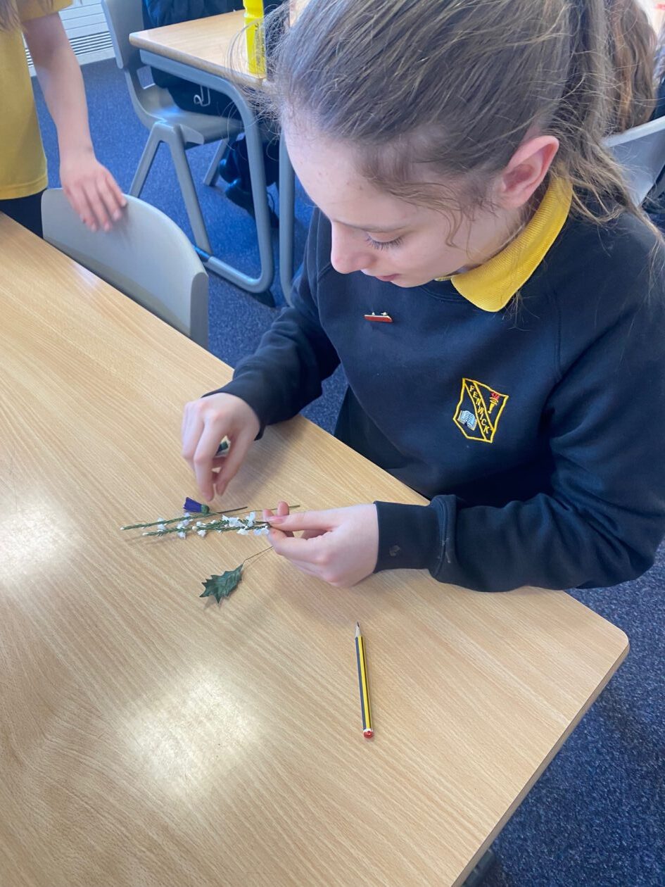 Gillian from our ECC kindly came along to our class today to help us make some “favours” for our Burns Supper. She kindly brought along her craft box from home and demonstrated how to make the thistle favour.