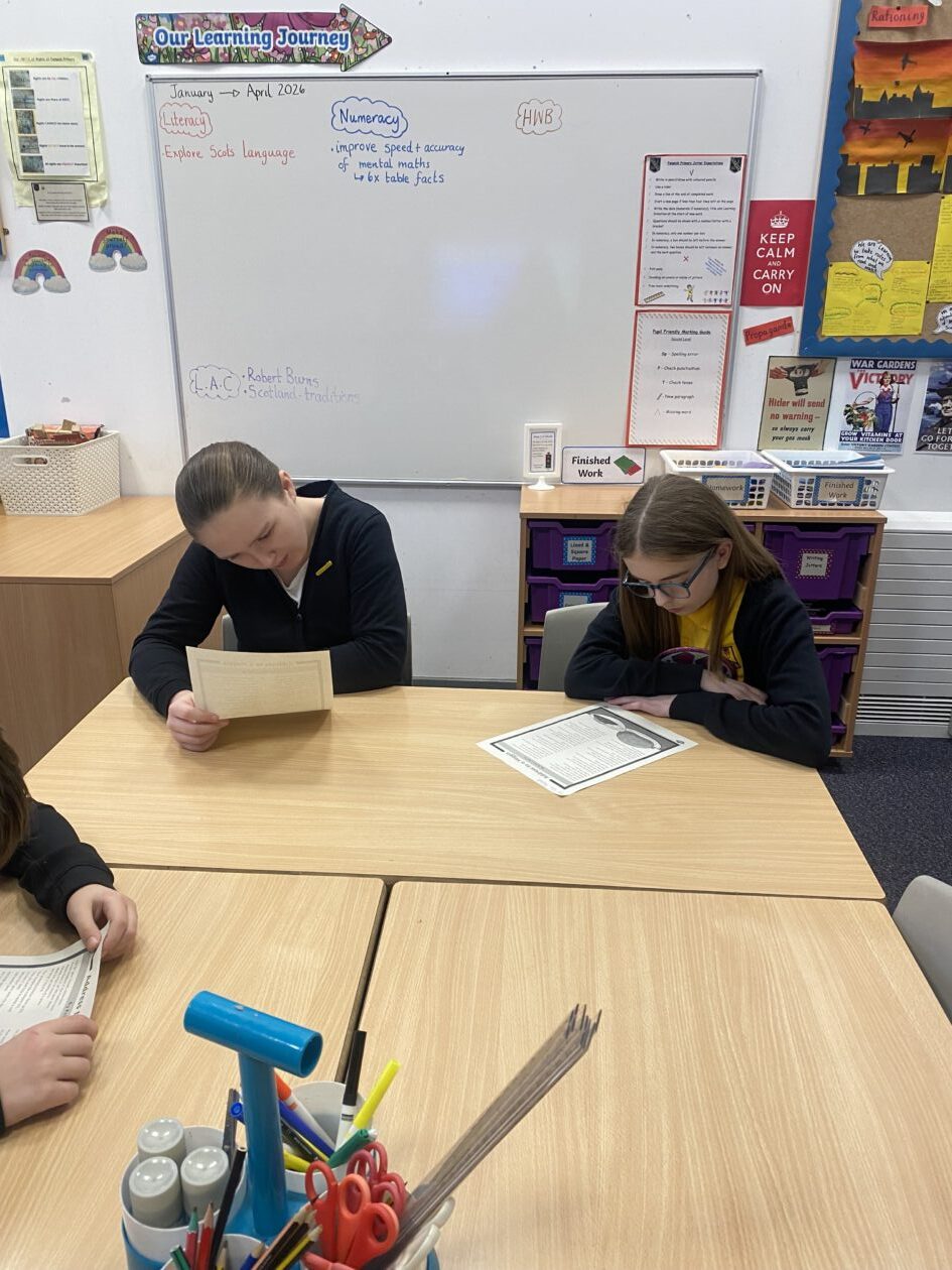 We were delighted to welcome Mr Borland to class this week to hear him recite Tam O’Shanter and The Address to the Haggis. We loved listening to him perform and he then listened to our performances ahead of our Burns Supper on Friday. He was so impressed with us all and give us a couple of hints and tips to improve our performances.