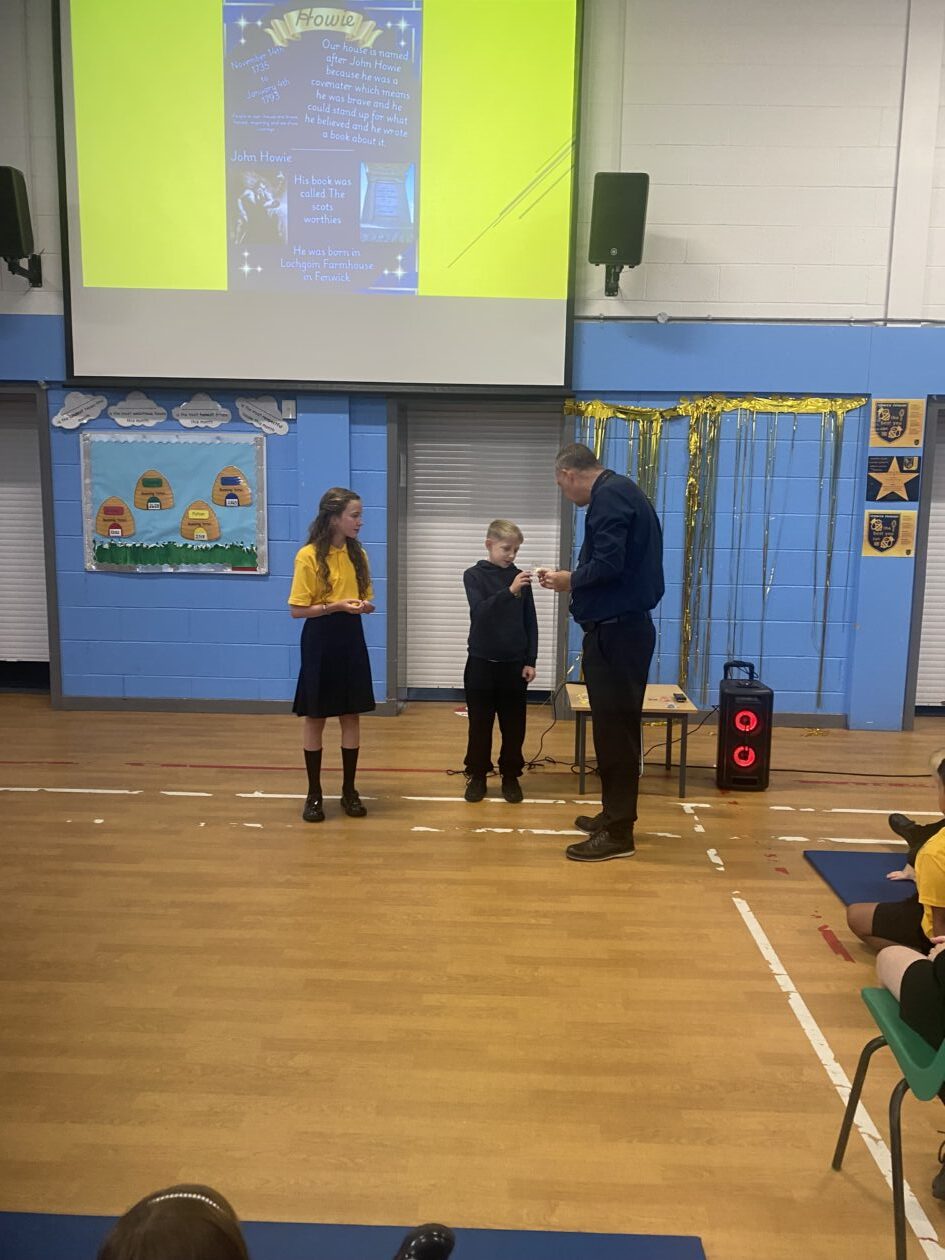 Mr Houston presented all badges at a whole school assembly.
