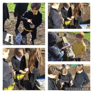 To celebrate Earth Day, P3/4 spend some time outside. We planted sunflower seeds. We have also been learning about time so we used natural materials to make clocks!