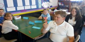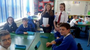 Well done to S3 pupils Callan Duncan, Lauren Thorburn, Paige Nelson and Laura Johnstone who assisted Mrs Smith in a transition lesson at Bellfield Primary . They gave a presentation to pupils about how much they enjoy French and also answered some questions from the Primary 7 pupils. Mrs Smith taught the class school subjects in French and our S3 pupils gave out stickers and prizes, helped with fun French games , interacted with pupils and led some of the learning. They worked well together as a team. Bravo!