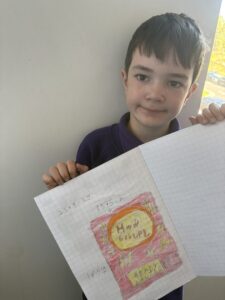 As part of Maths Week Scotland we were continuing being Crisp Detectives. We measured crisp packets and drew scale versions in our jotter. Then we followed a brief to create our new crisp packet designs. Here are some of the wonderful designs created.