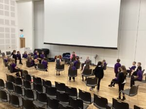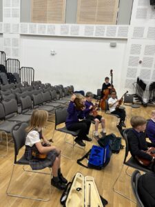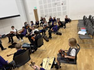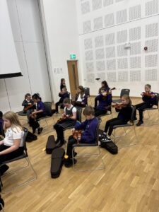 This week we learned the names of the strings on our instruments. We played along as an orchestra and are excited to be using some music next time.