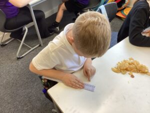 We kicked Maths Week Scotland off by being Crisp Investigators! We counted how many crisps we had, measured the longest and shortest and compared ingredients and amounts within the class.