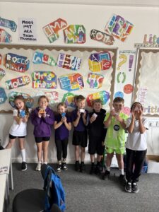 We looked at the nets of 3D shapes and created our own 3D monsters! Take a look!