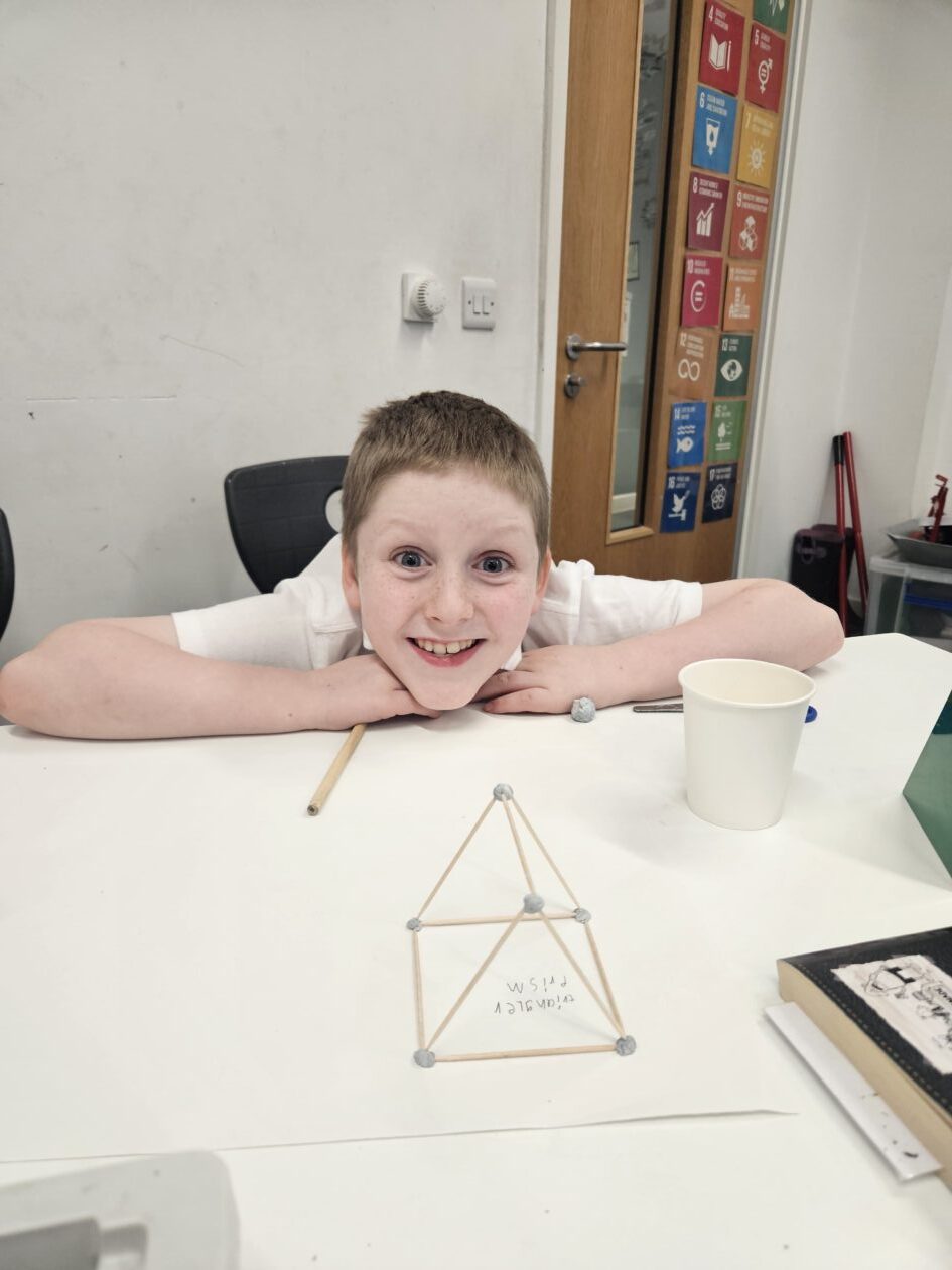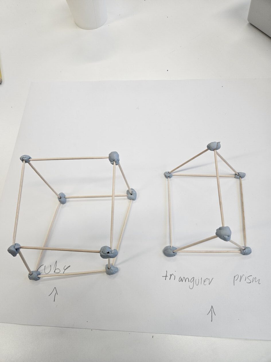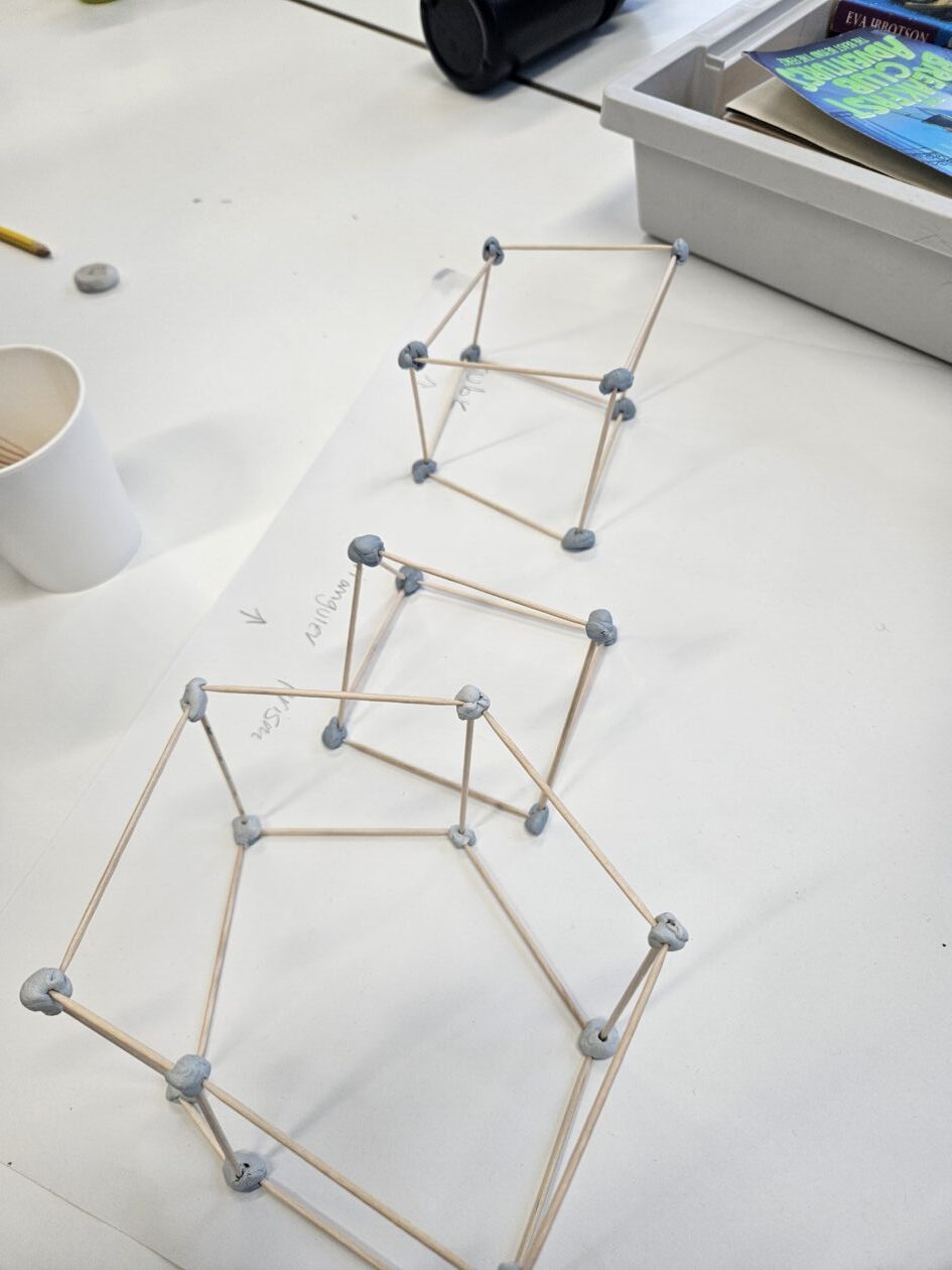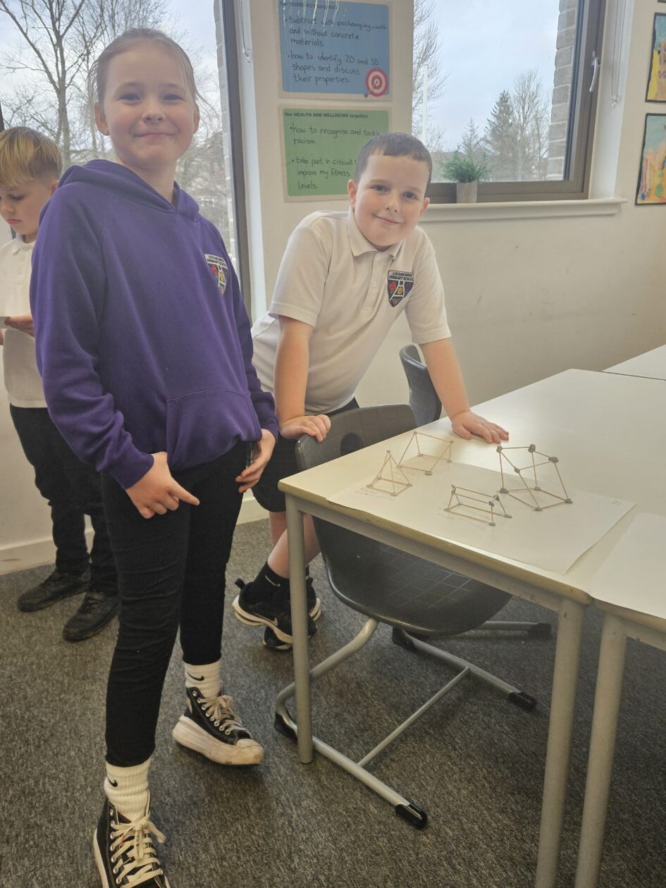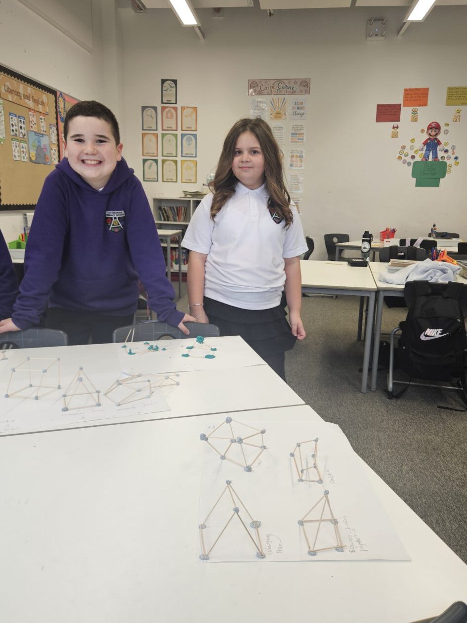 P4/5 have been learning about the properties of 3D shapes. We built skeleton models of some 3D shapes to show the edges and vertices. We used toothpicks as the edges and blue tac as the vertices. Have a look at our fantastic models!