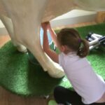 Once inside, we had a go at milking the life sized cow but it only had water coming out of the udders!