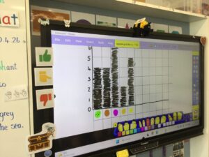Today we started data handling. We discussed and made a human graph of our favourite flavours of ice cream. Then we made a graph on the promethean board. We discussed our findings.