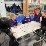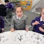 As part of outdoor learning this week, we have been revisiting the names and properties of 2D shapes. We came outdoors to do a 2D shape hunt together. We talked about some of the shapes we saw in our outdoor classroom and school playground, Then the children tried drawing the 2D shapes they had found using chalk on our damp playground. This practical play allowed for lots of talk about shapes, their sides and their corners. Next week we will move on to investigate 3D shapes too!