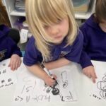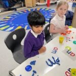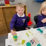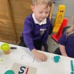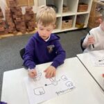 The children are using their phonic strategies to build two and three letter words- supported by Mrs Lee and Mrs Templeton.
