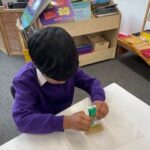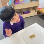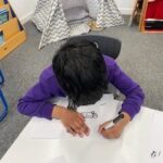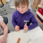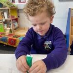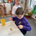 The children then explored 2D shapes further using our magnetic shapes. They used the magnets and drew round shapes and patterns too.