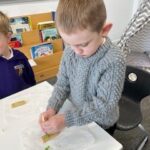 We have been learning about the seasons of the year. We have been learning about how the trees change colour and about hibernation. The children went an autumn walk and gathered leaves, twigs, acorns and other exciting autumn finds. They then used a leaf identifier to identify the trees which the different leaves came from. We had a lovely afternoon and the weather was kind to us!