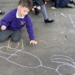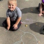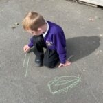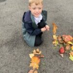 We have been reading the book ‘Leaf Man’ and looking at the wonderful art work within it. The art work was made with leaves. The children had a go at making their own leaf people outdoors.