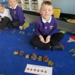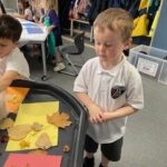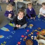 We have been learning about the seasons of the year. We have been learning about how the trees change colour and about hibernation. The children went an autumn walk and gathered leaves, twigs, acorns and other exciting autumn finds. They then used a leaf identifier to identify the trees which the different leaves came from. We had a lovely afternoon and the weather was kind to us!
