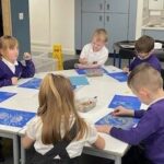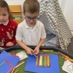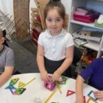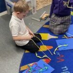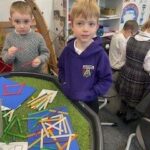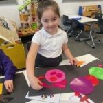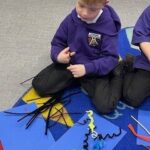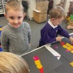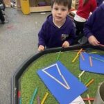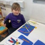 We have been learning about shapes with straight sides. We have been counting sides and using lollipop sticks to make shapes, shape diagrams and also using the straight lines creatively to make shape art. We love playing with shapes in P1L!